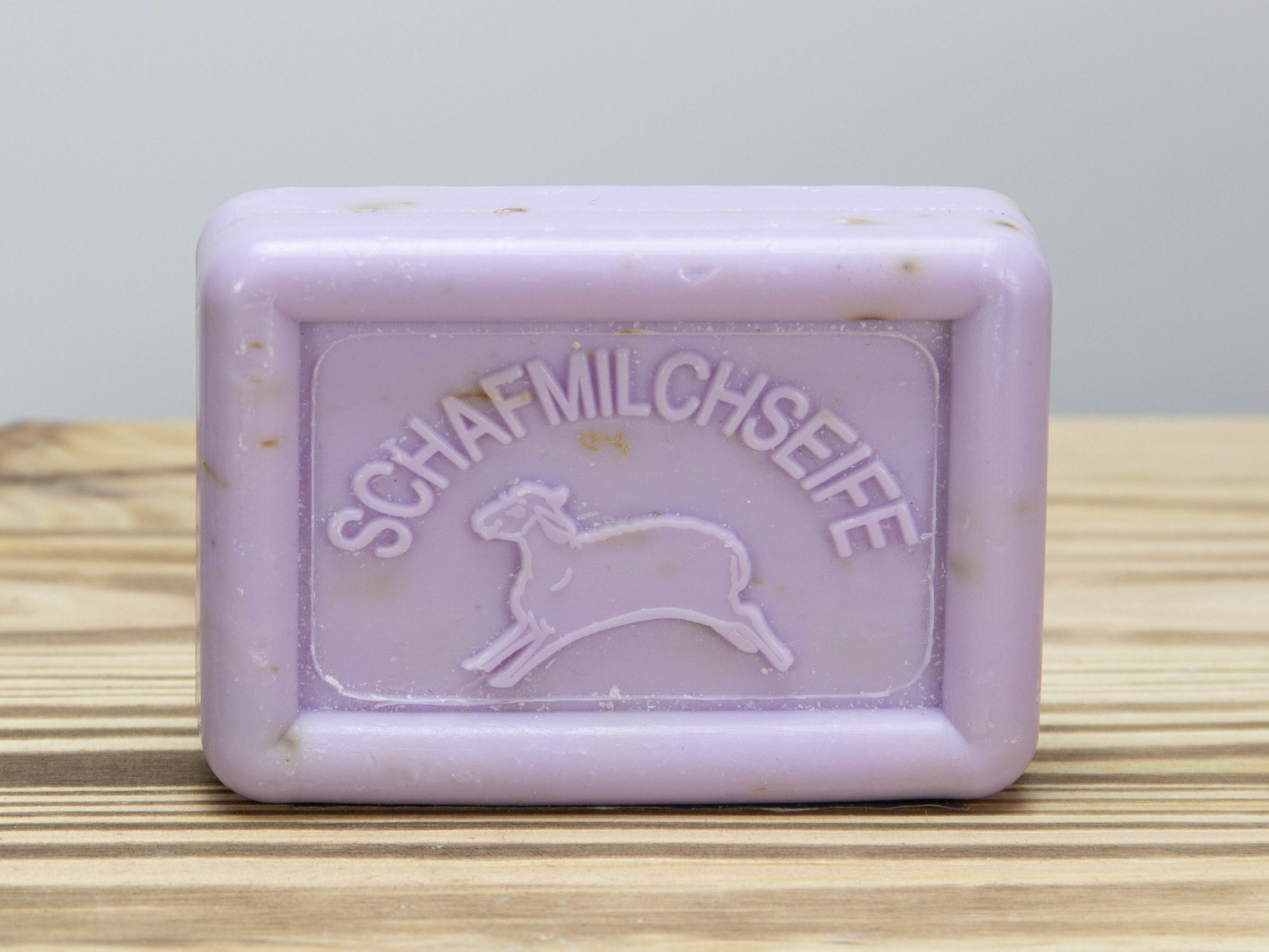 Sodium Palmate, Sodium Palm Kernelate, Aqua, Glycerin, Parfum, Prunus Amygdalus Dulcis Oil, Palm Acid, Butyrospermum Parkii Butter, Sodium Chloride, Sheep Milk, Palm Kernel Acid, Etidronic Acid, Tetrasodium EDTA, Tocopherol, Helianthus Annuus Seed Oil, Linalool, Linalyl Acetate, Pinene, Lavandula Oil/Extract, Camphor, CI 77891, CI 60725, CI 17200.
